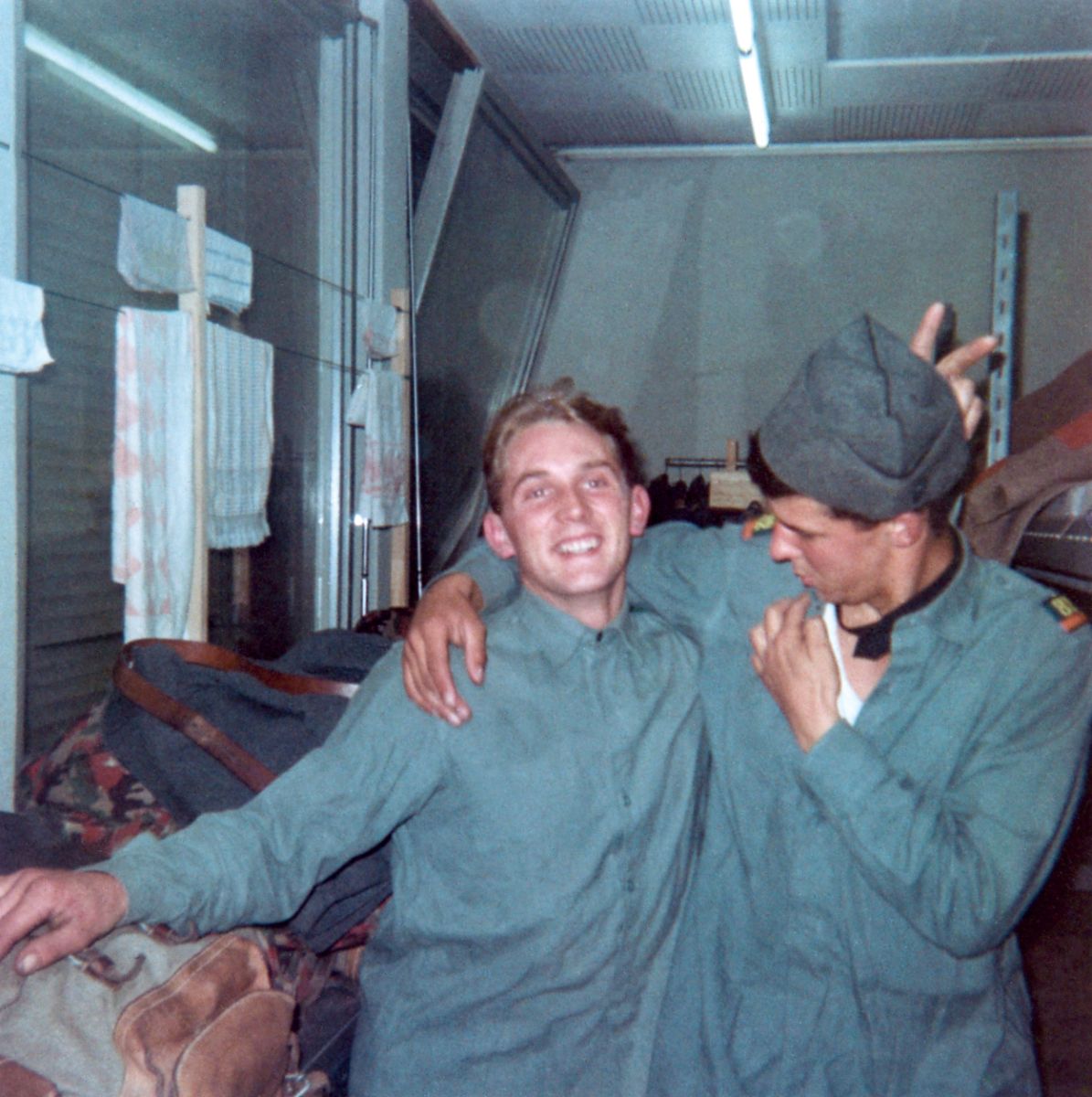 Nun interessiert mich natürlich brennend, wie Anna und Jakob zueinander gefunden haben. Auf die Frage, wie ihre Liebesgeschichte begonnen hat, antwortet Köbi sofort: ,,z’Militär het e wichtigi Rolle gspillt.’’ Nach seiner Zeit auf hoher See sei er im August 1967 eingerückt, um die RS abzuschliessen. Dies war nötig, da er sich als 19-Jähriger während der Rekrutenschule, nach einem Sturz aus fünf Metern, einen 7,5 Zentimeter langen Leberriss zugezogen hatte und daraufhin aus dem Militär ausscheiden musste.
